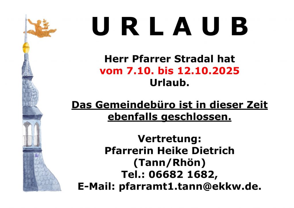 19.10. | 10:30 Uhr | Familiengottesdienst mit Taufe und Kirchenkaffee | Pfarrer H. Stradal |