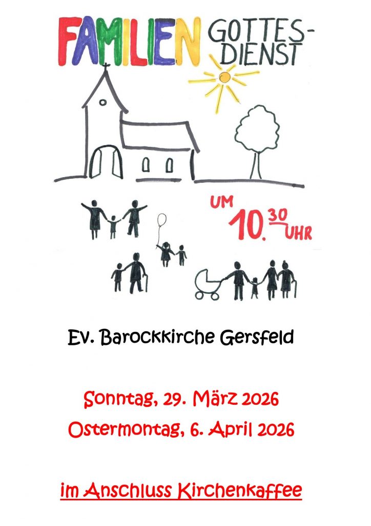 | 29.03. | 10:30 Uhr | Familiengottesdienst, anschließend Kirchenkaffee | Pfarrer H. Stradal |